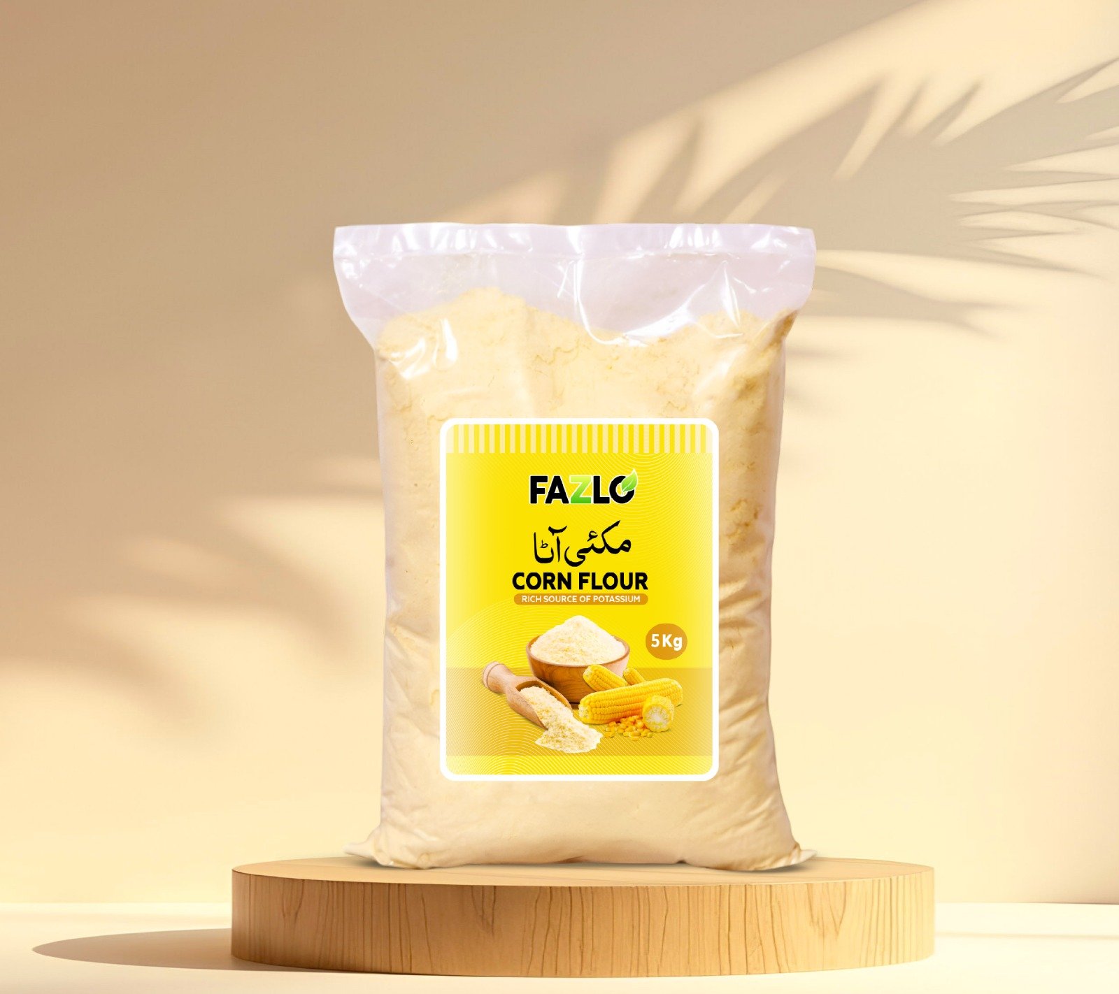 Shop Fazlo Corn Flour (مکئی کا آٹا) online in Pakistan. A rich source of potassium, perfect for makki ki roti, breads & traditional dishes. Pure, fresh, and nutritious flour for a healthy lifestyle.