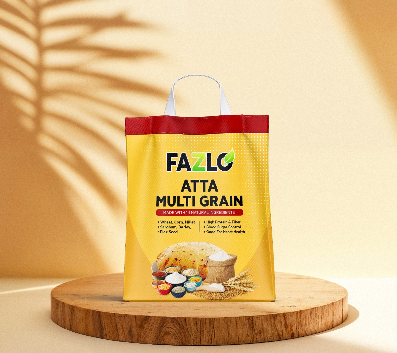 Shop Fazlo Multi Grain Atta online in Pakistan. Made with 14 natural ingredients including wheat, corn, millet, barley & flax seed. High in protein & fiber, helps control blood sugar, supports heart health, and makes soft, nutritious rotis.